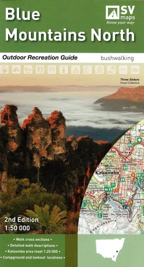 2nd edition of the Blue Mountains National Parks North Map at 1:50,000 published by Spatial Vision. Includes Yellomundee Regional Park LOCAL TOWNS including Mount Victoria, Blackheath, Medlow Bath, Katoomba, Leura, Wentworth Falls, Lawson, Springwood, Glenbrook.